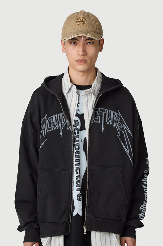 PUNKER ZIP HOODIE 2 WASHED BLACK