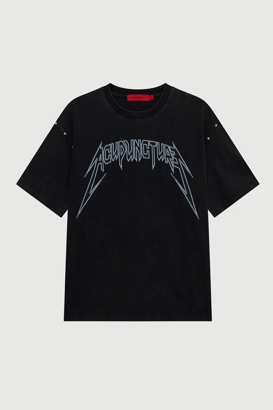 STUDDED METAL T-SHIRT WASHED BLACK