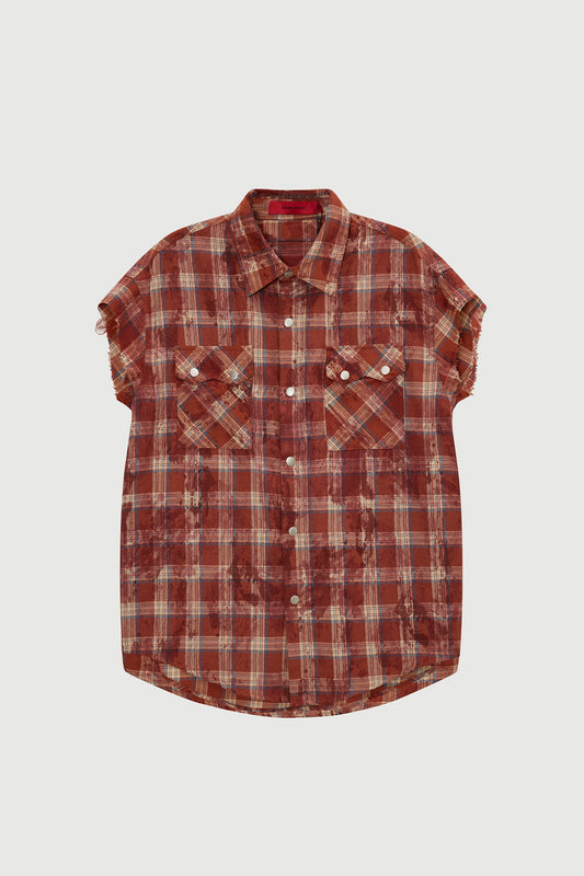 TEXAS SLEEVELESS SHIRT CHECK RED