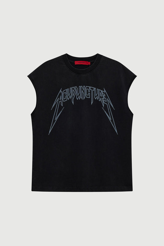 STUDDED METAL SLEEVELESS WASHED BLACK